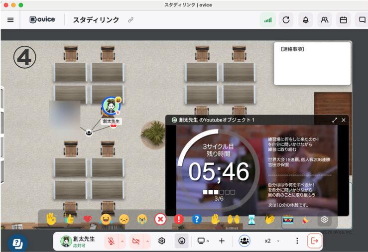 バーチャル空間のオンライン自習室で20:00〜22:00に勉強します。